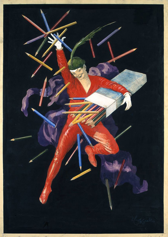 1921016F0 : A magician pulls numerous matches out of a box. In the painted photo 1921016F1, the matches are replaced by pencils, the hat by a mask. In the painted photo 1921016F2, the box is replaced by Suchard chocolate bars, the matches by chocolate sticks.