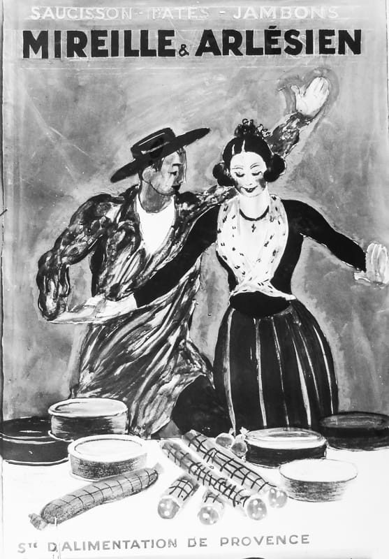 An actor, dressed in an 18th-century costume, presents a magnificent ham on a tray.