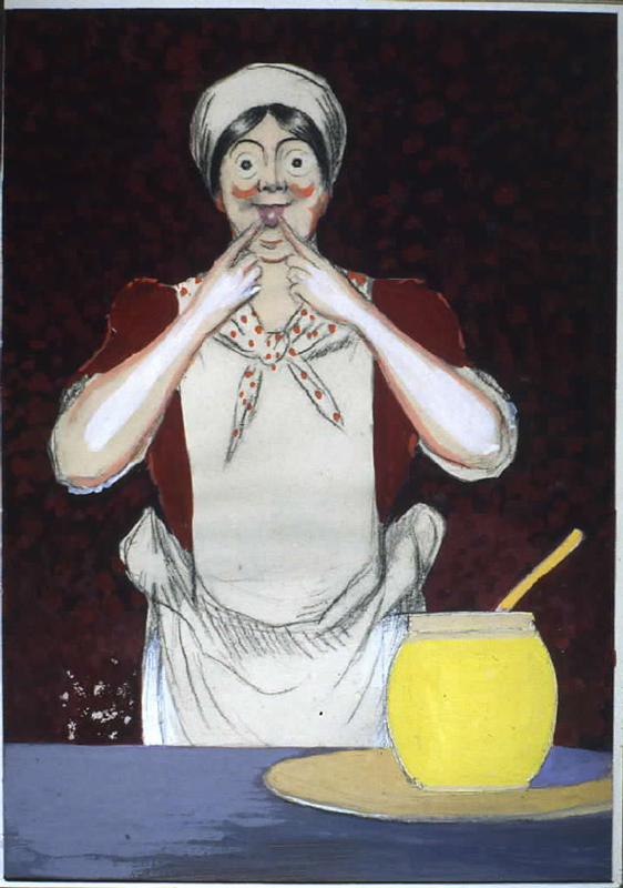 A cook must choose between a block of butter and pre-packaged margarine. The choice is easy. A variant has been designed for Sat margarine (see black and white photo).