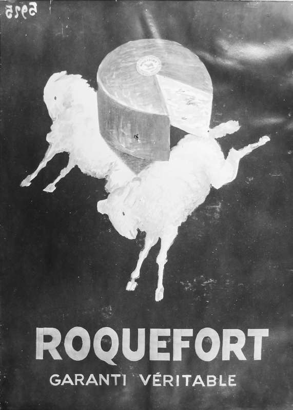 This sketch has been varied with other letters and the Société Roquefort logo on the cheese (see black and white photo).