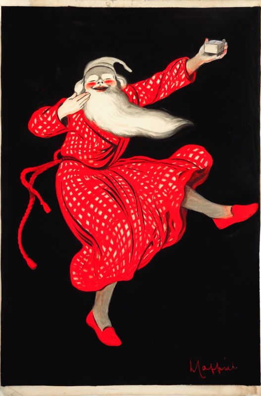 An old man dances with joy, no longer feeling any pain thanks to Uricure. He is wearing a dressing gown, slippers, and a nightcap. His long beard is flying.