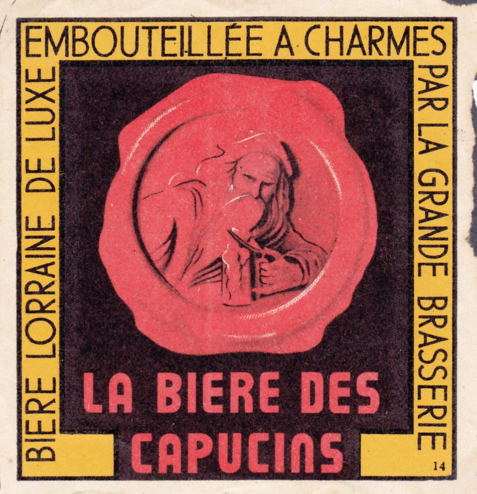 1910241Z1 : Étiquette pour une bouteille de Bière des Capucins brassée dans la Brasserie de Charmes.