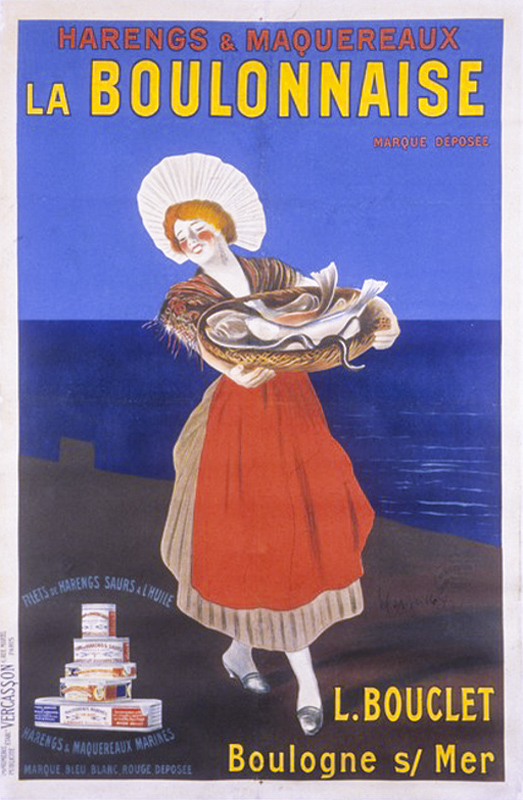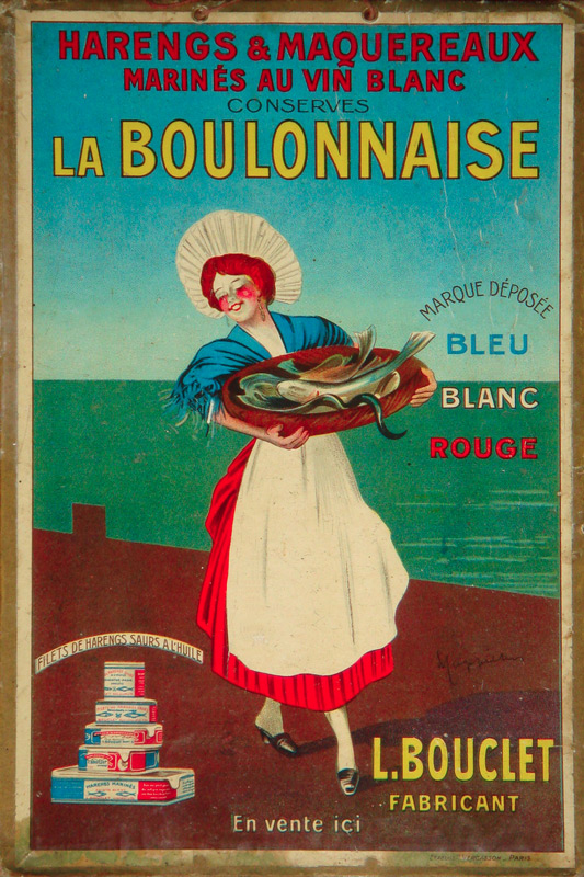 Conserves de harengs et de maquereaux fabriquées par la société L. Bouclet à Boulogne s/mer. La maison Bouclet, créée en 1894 fut la première à armer des harenguiers à vapeur. Elle contribua ainsi à l'essor économique de Boulogne-sur-Mer.