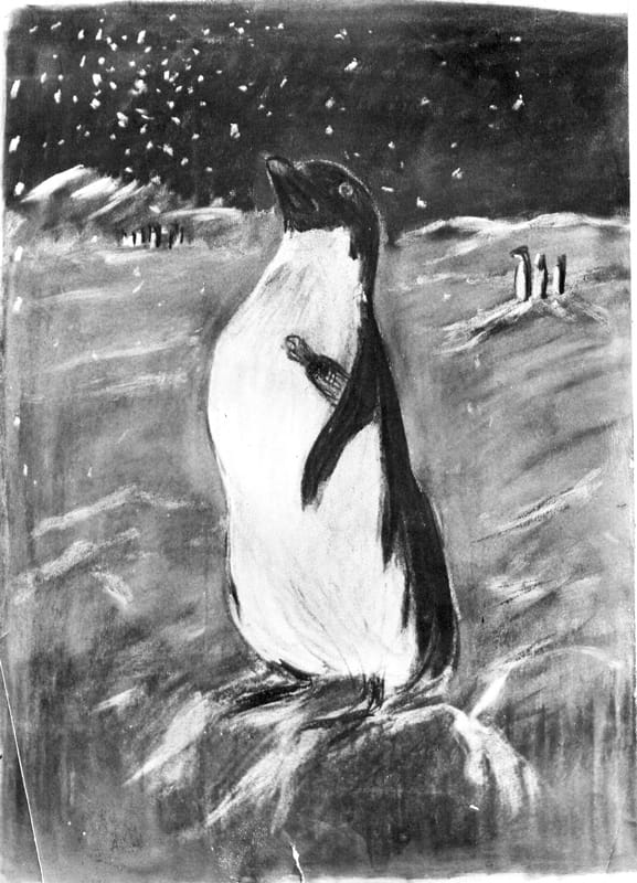 Un pingouin dans un environnement gelé porte sous son aile une bouteille isotherme.