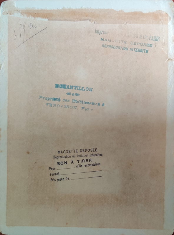 En bas du recto est indiqué qu'il s'agit d'une maquette. Au verso se trouvent tous les tampons à compléter pour devenir un bon à tirer.