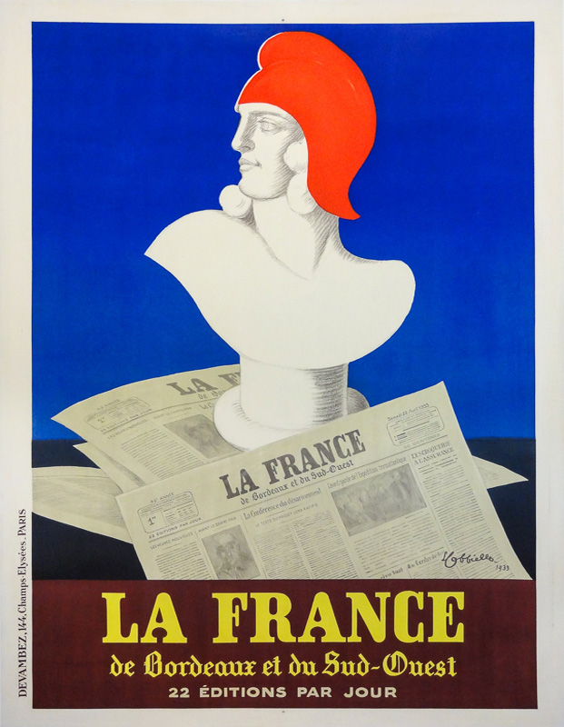 Cette affiche a été réalisée en 1930 pour le Petit Provençal (voir la photo de l'esquisse en noir et blanc). Mais elle n'a été vendue qu'en 1933 pour La France de Bordeaux et du Sud-Ouest.