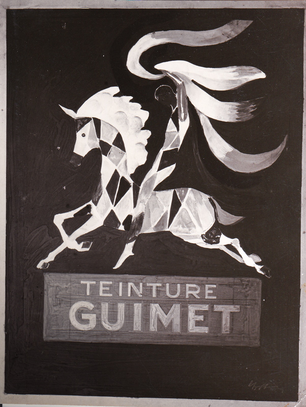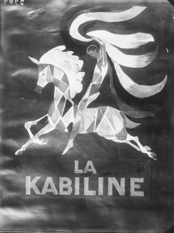 Cette esquisse a été réalisée pour la teinture "La Kabiline" produite par les Établissements Legris à Versailles. N'ayant pas été vendue, elle a été proposée aux teintures Guimet. Enfin elle a été adaptée pour Dupont d'Isigny qui lui préférera un autre dessin.