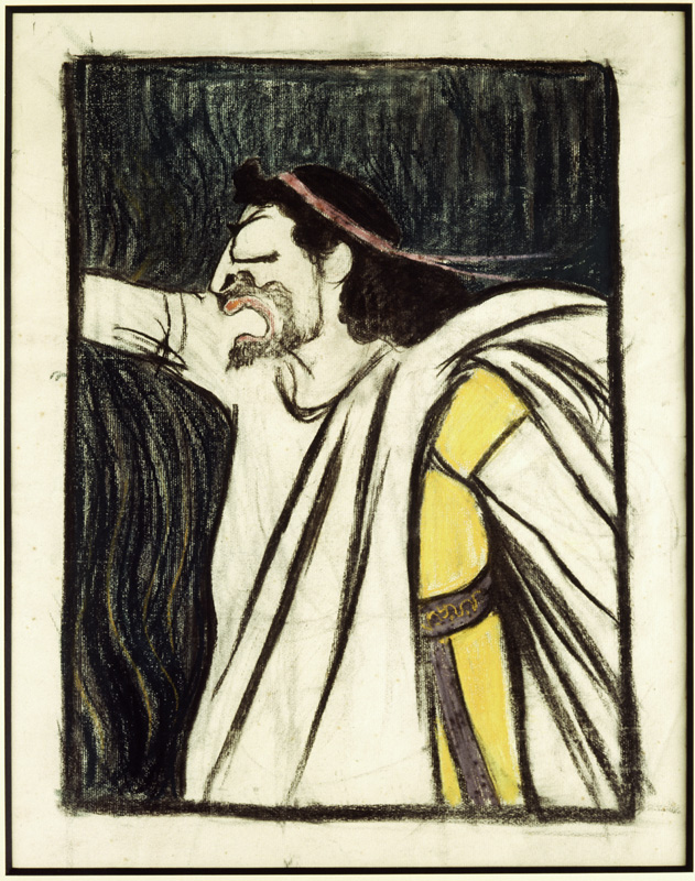 R12a : Portrait-charge de Mounet-Sully dans Œdipe roi.