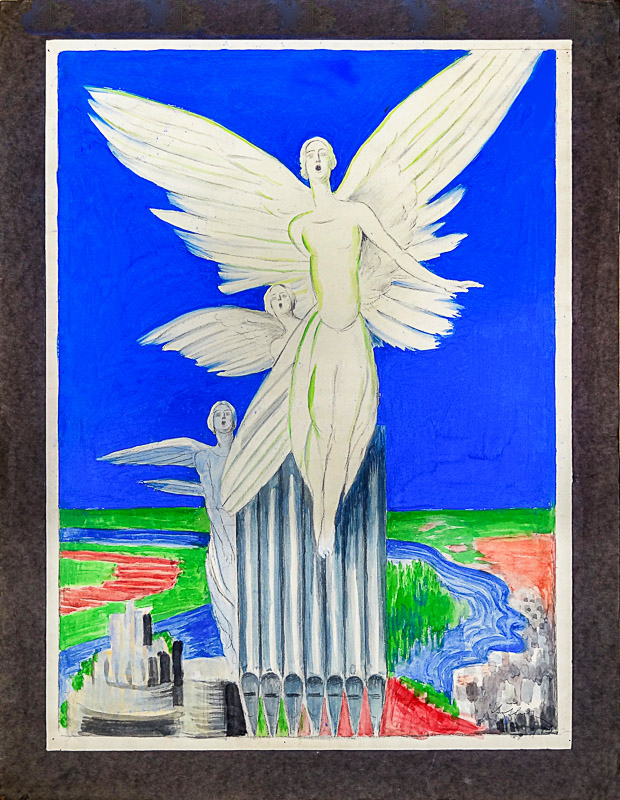 Sur un fond de Seine et de Château Gaillard, des anges sortent de l'orgue du 17ème siècle de l’église Saint-Sauveur.